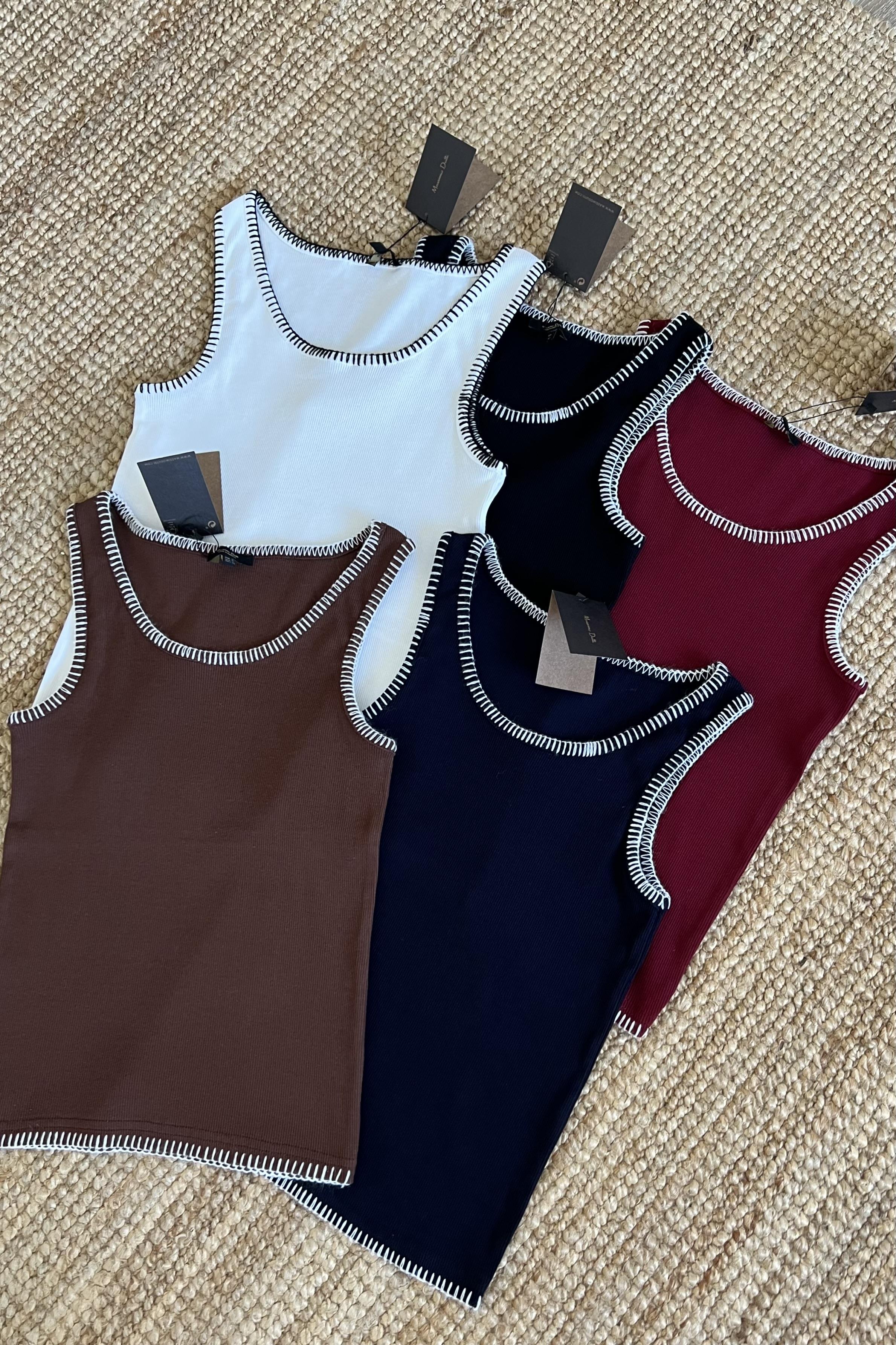 Siyah Dikiş Detaylı Fitilli Kolsuz Tshirt