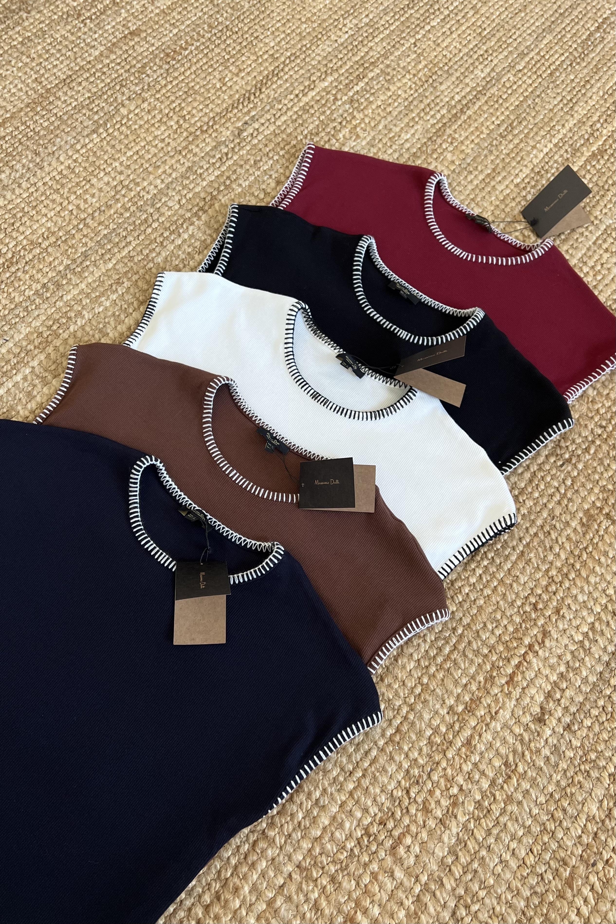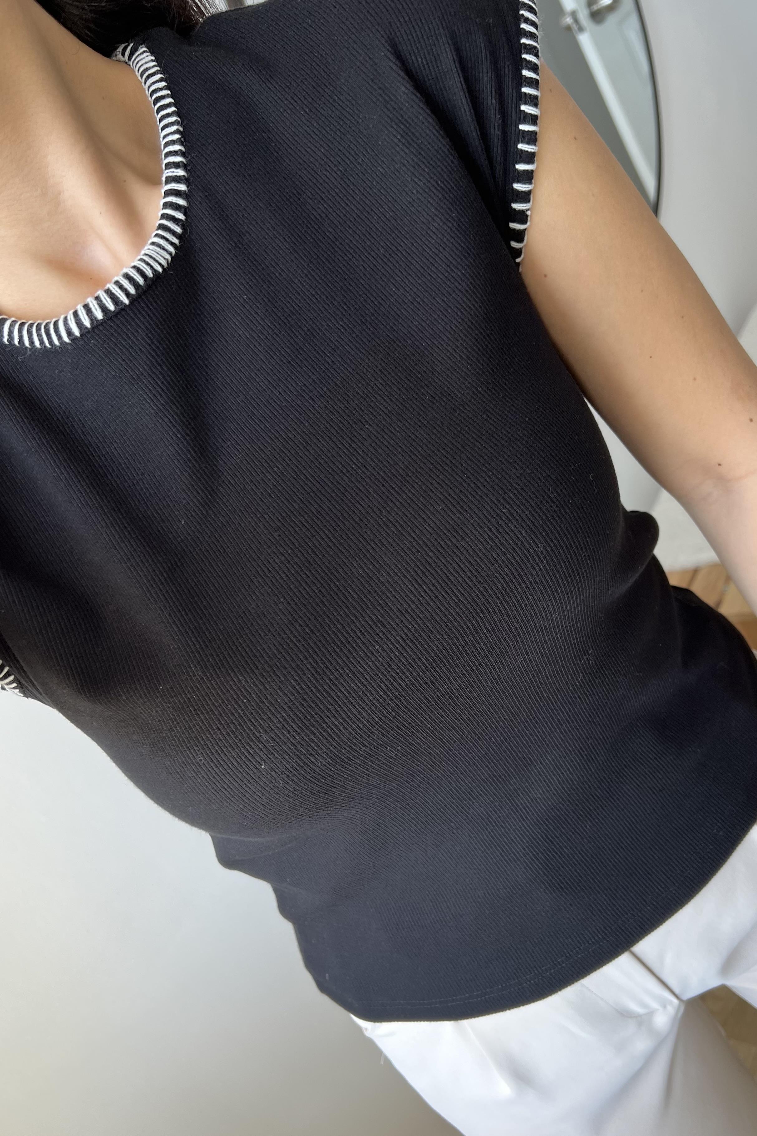 Siyah Dikiş Detaylı Fitilli Tshirt