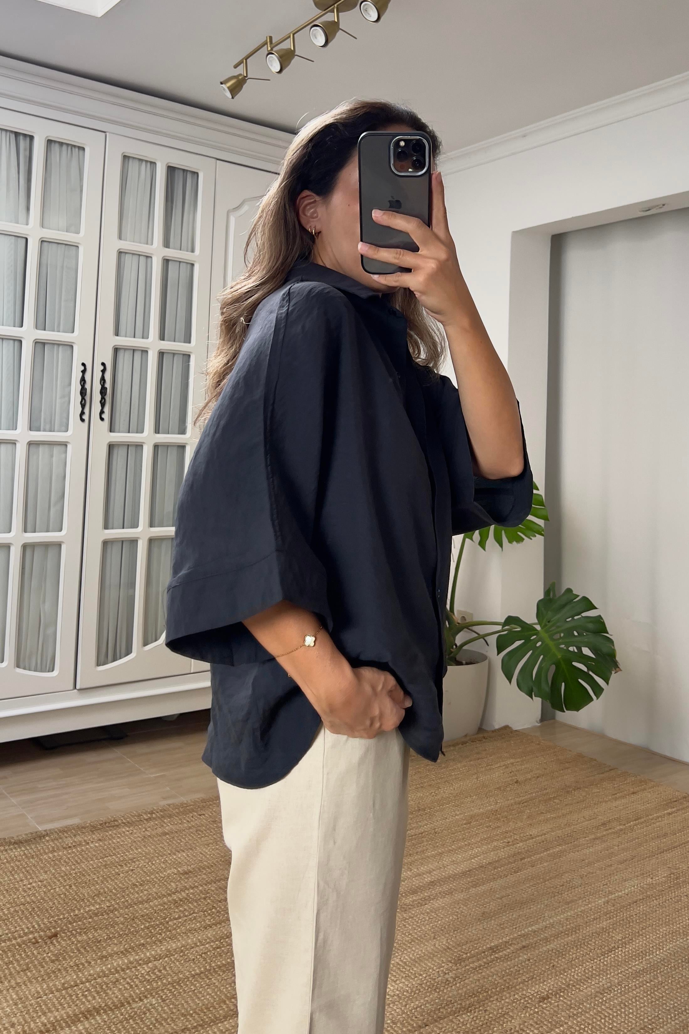 Siyah Dökümlü Tensel Gömlek