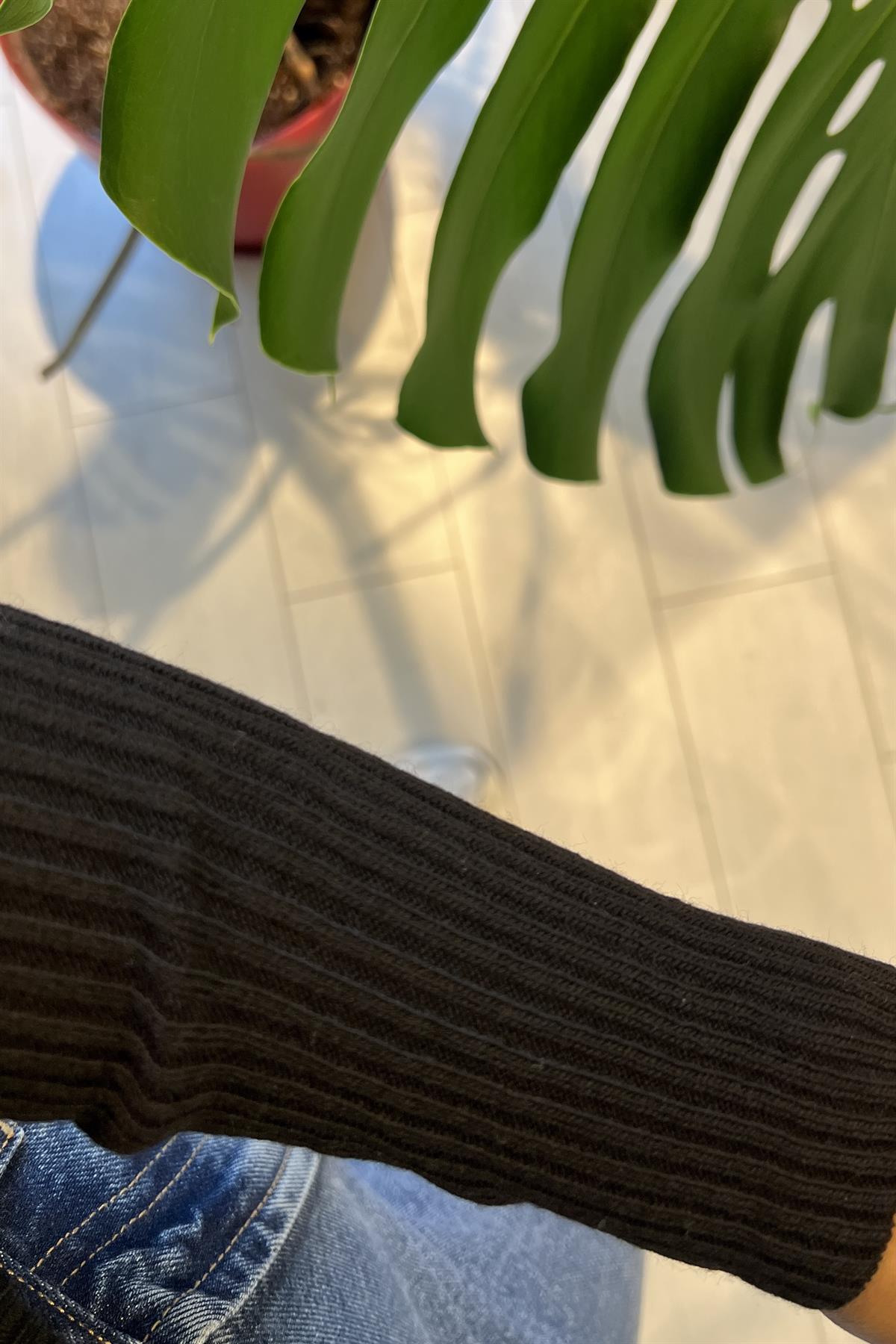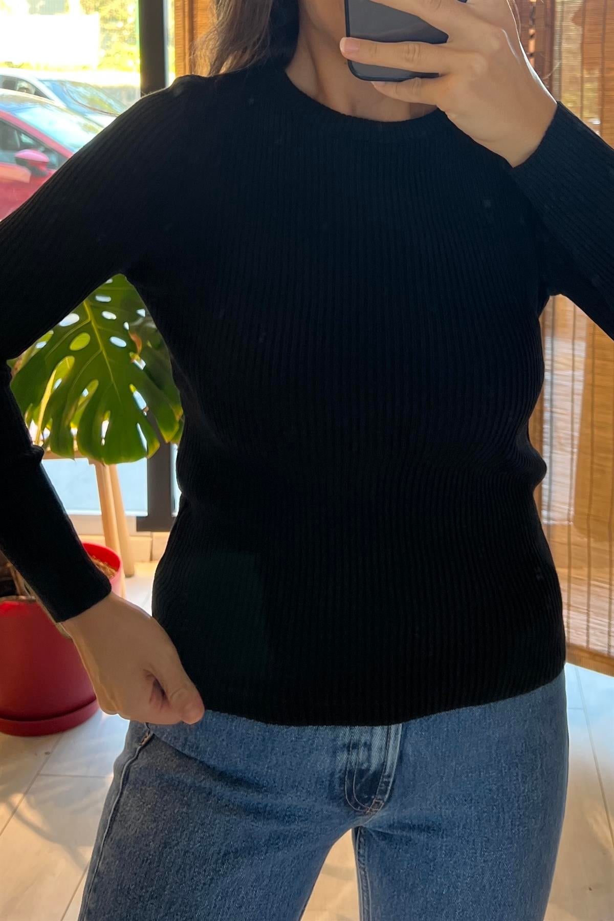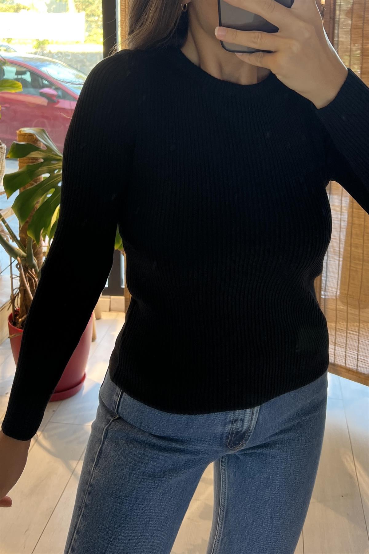 Siyah Fitilli Basic Triko