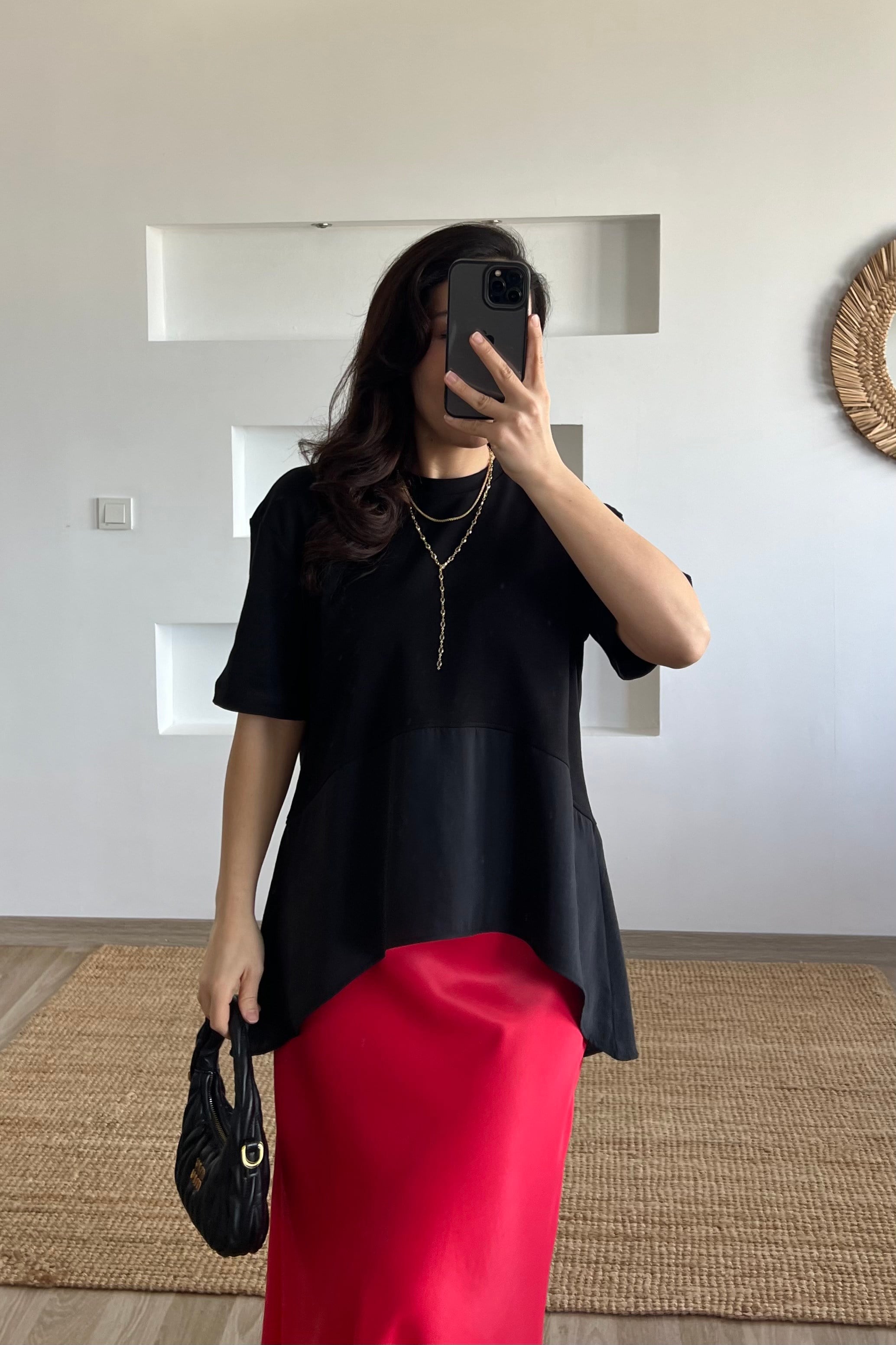 Siyah Garnili Oversize Tshirt