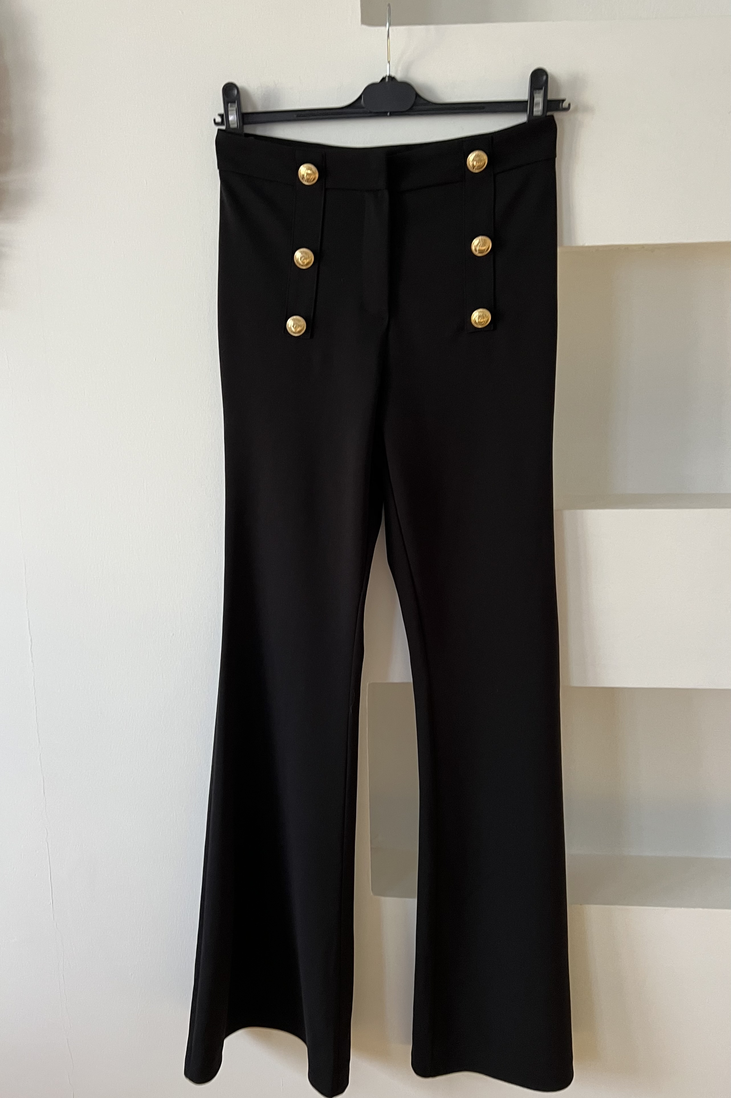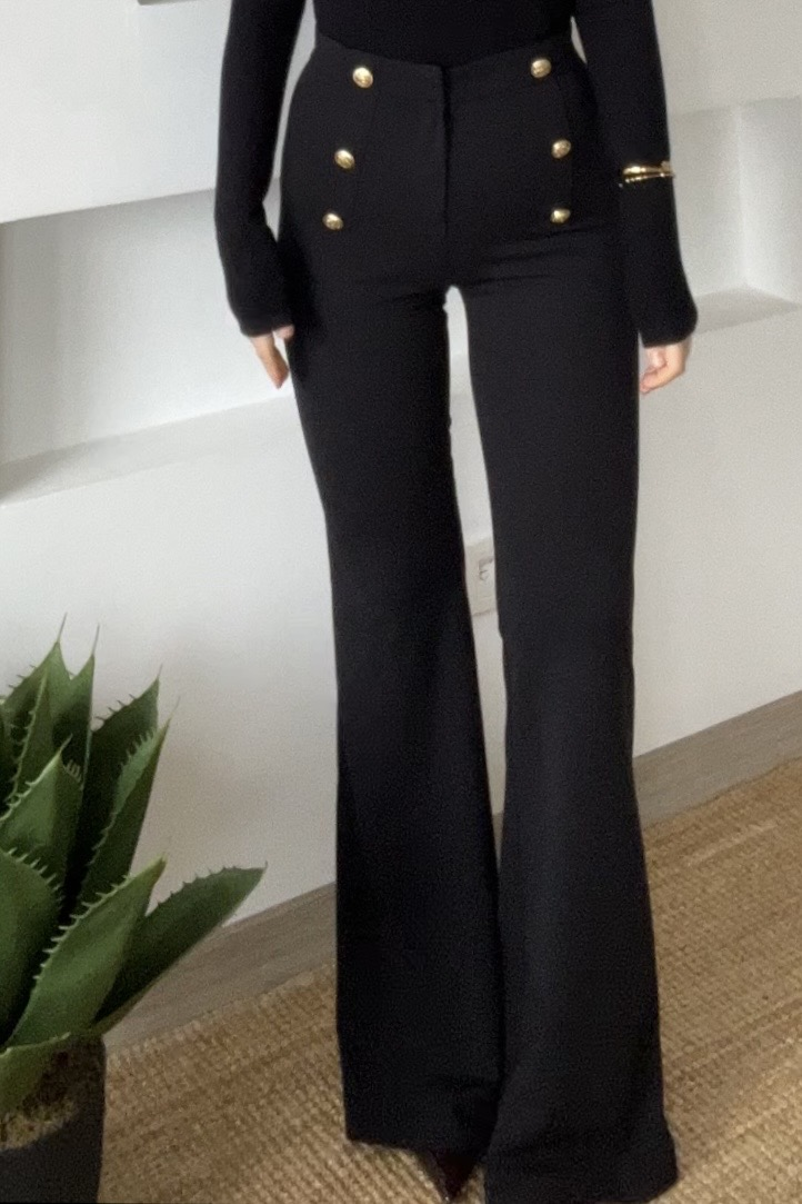 Siyah Gold Düğmeli Yüksek Bel Toparlayıcı İspanyol Pantolon