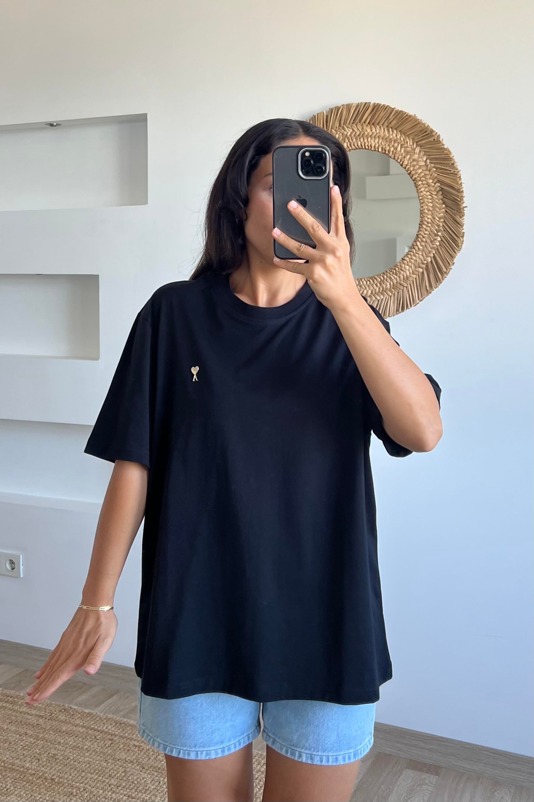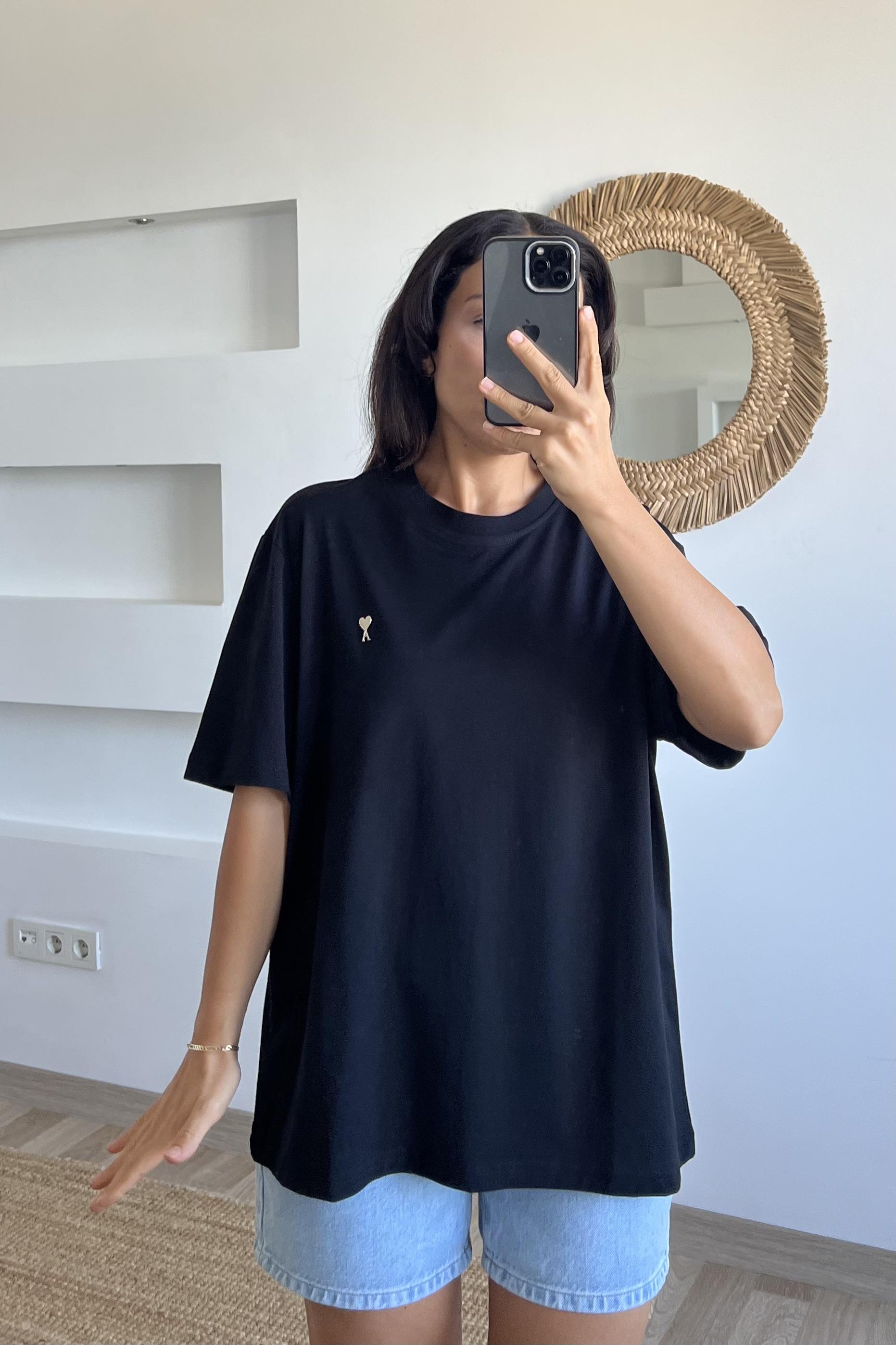 Siyah Mini Kalpli Oversize Tshirt
