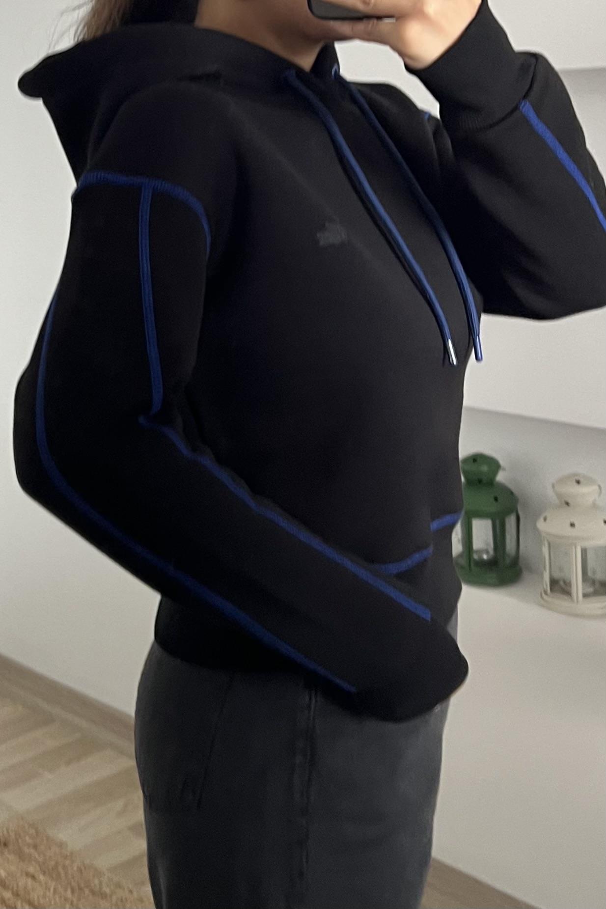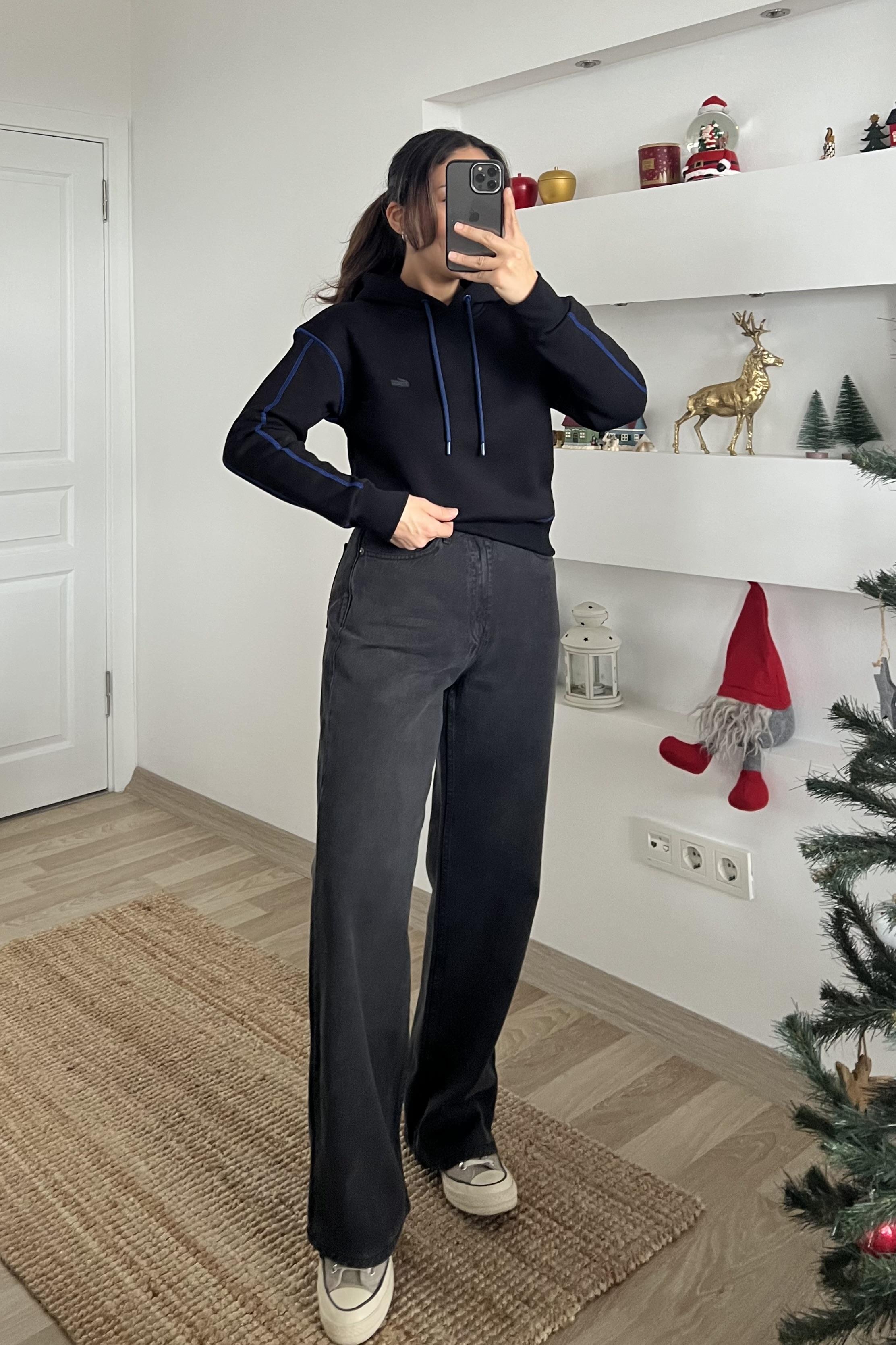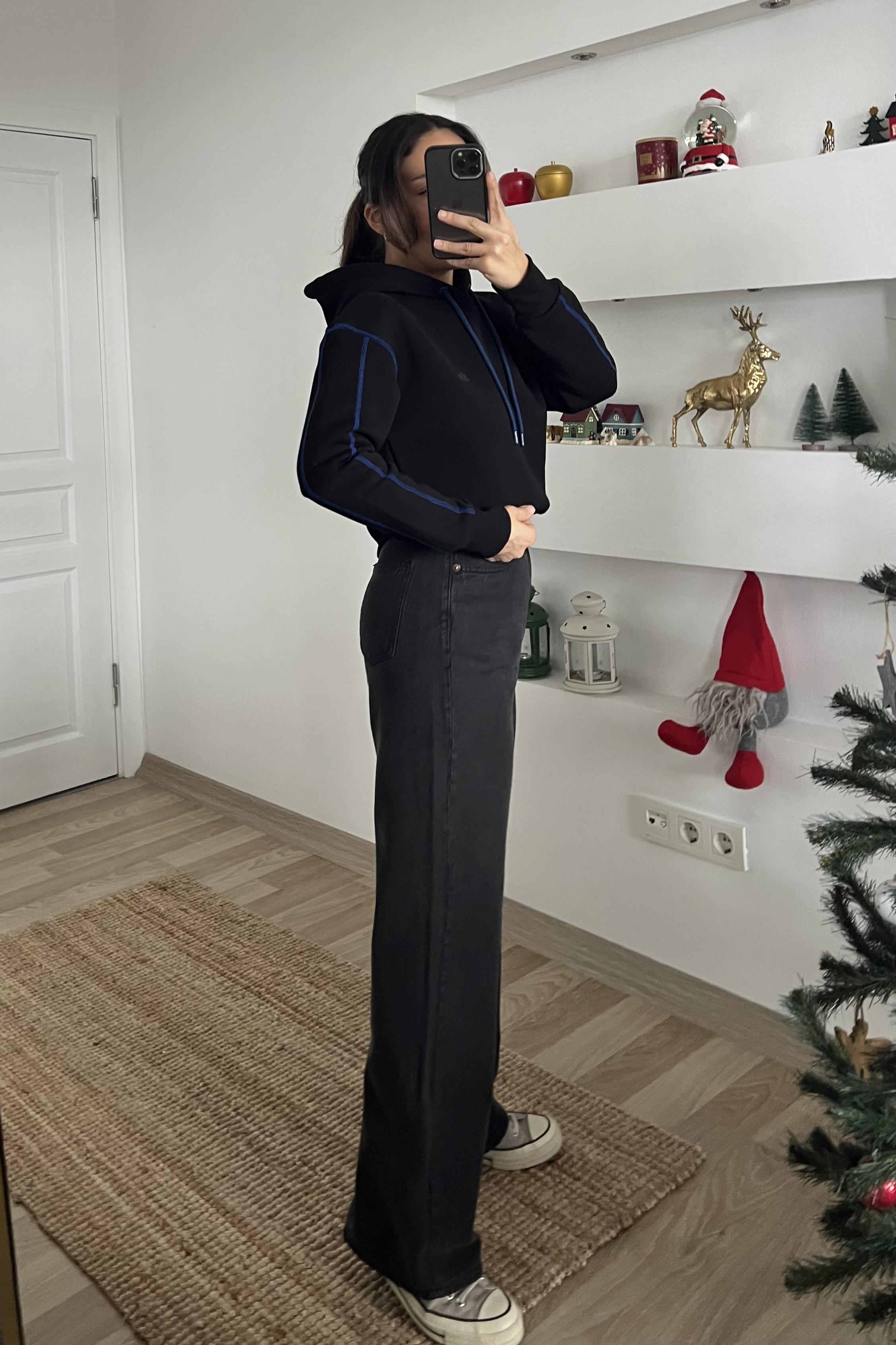 Siyah Neon Dikiş Detaylı Kapüşonlu Sweatshirt