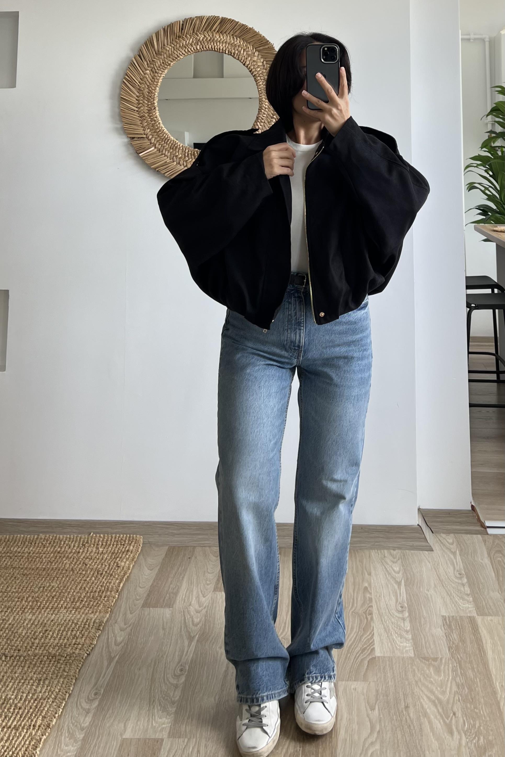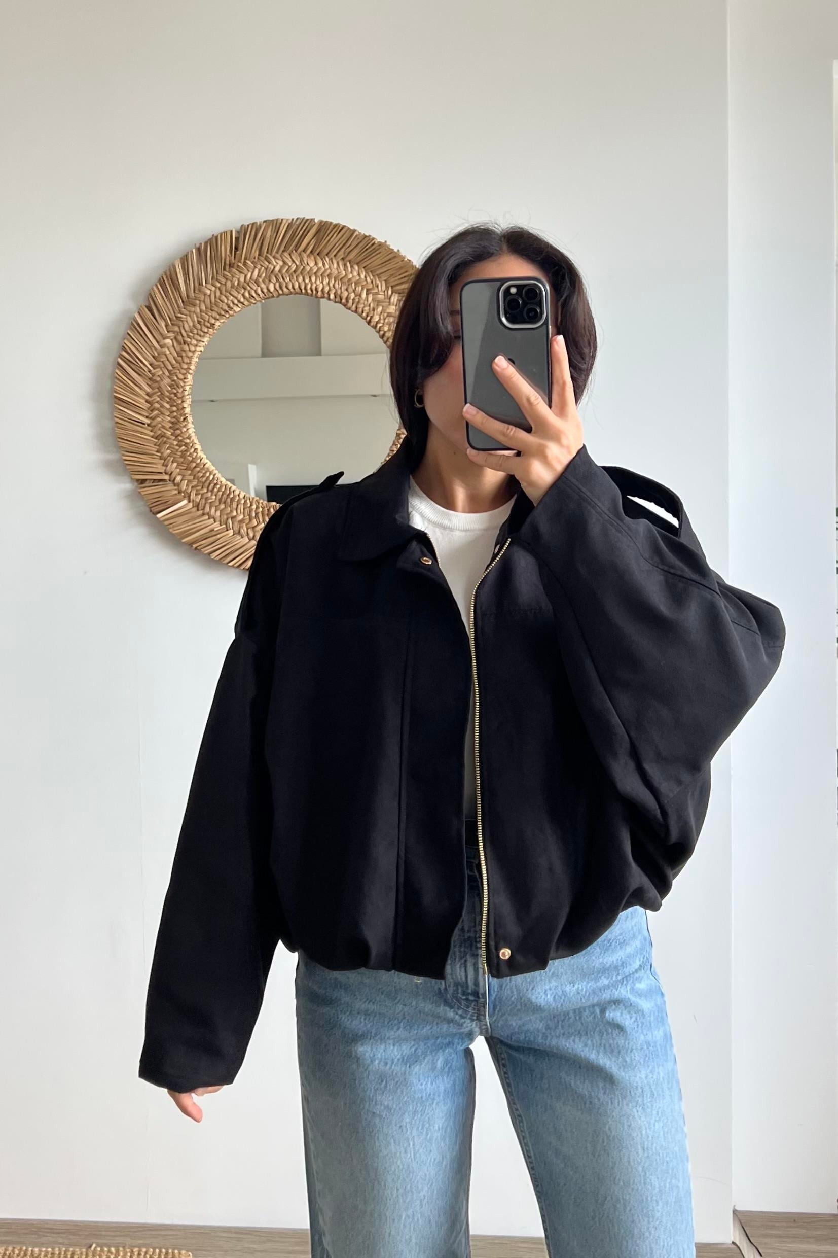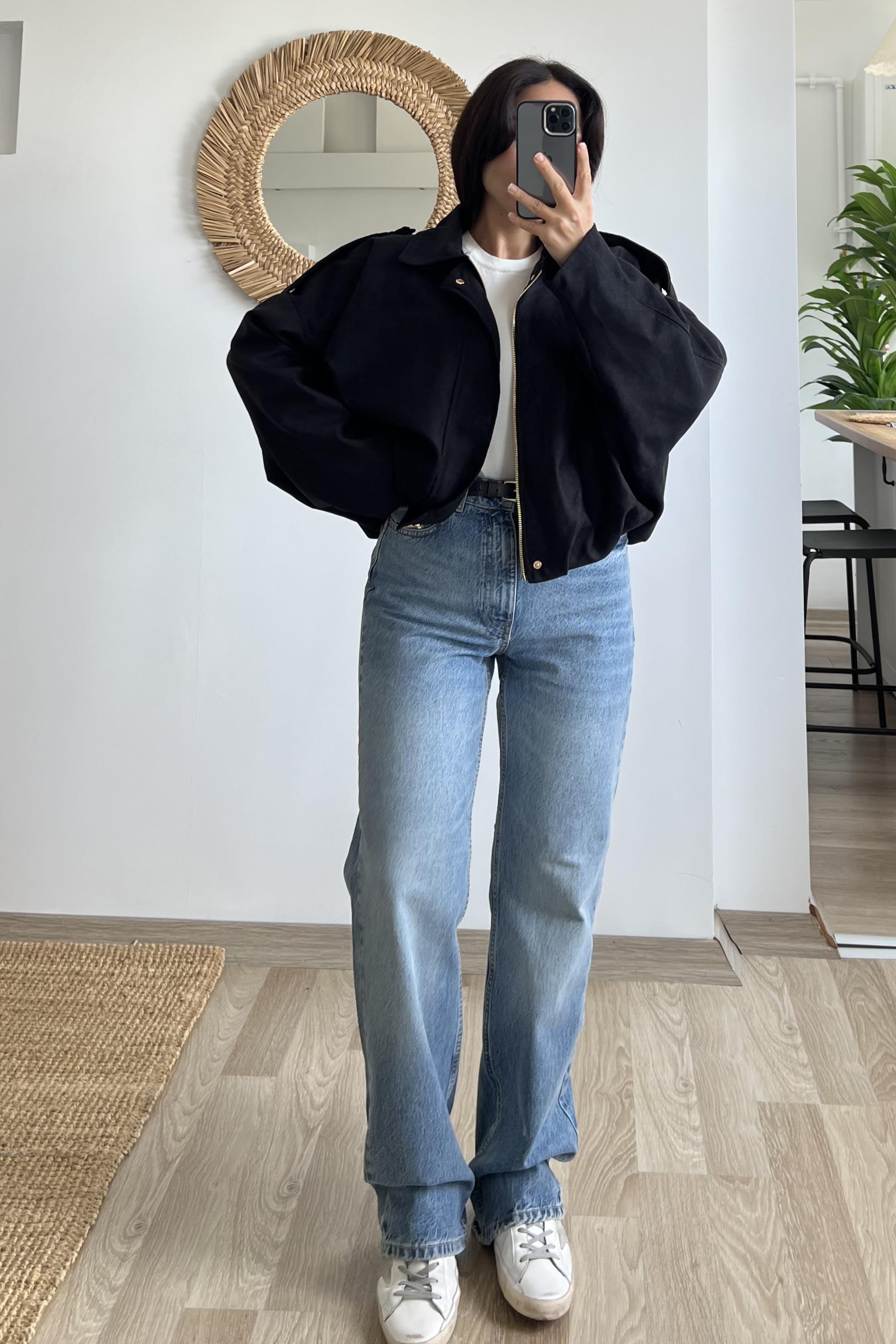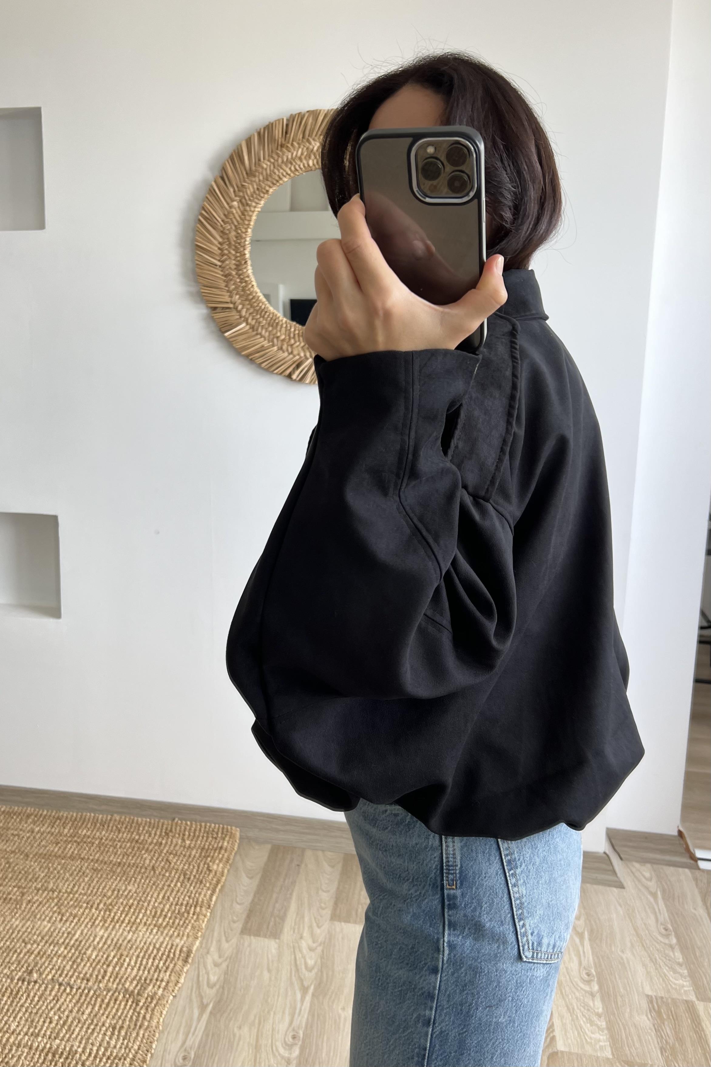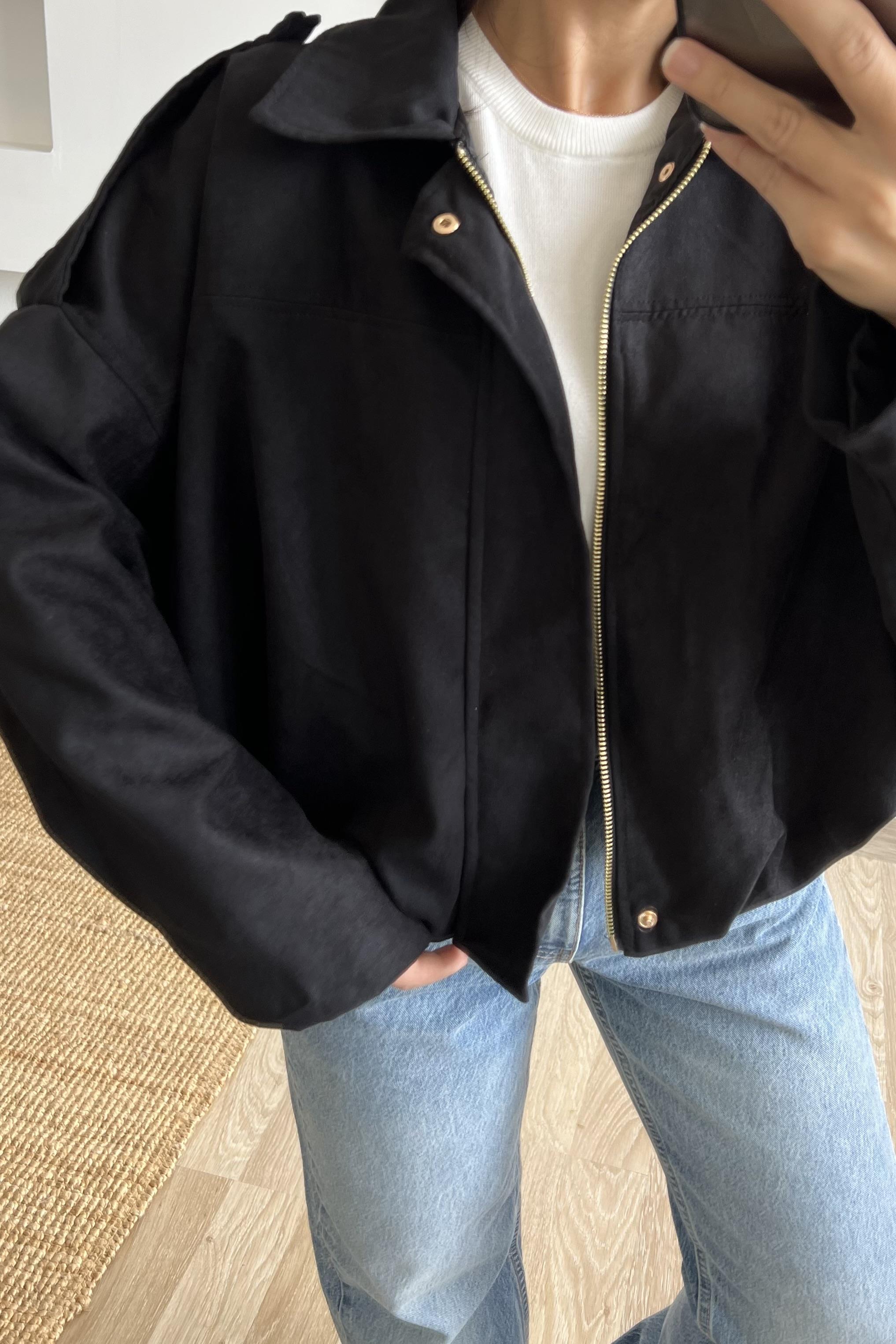 Siyah Süet Görünümlü Bomber Ceket