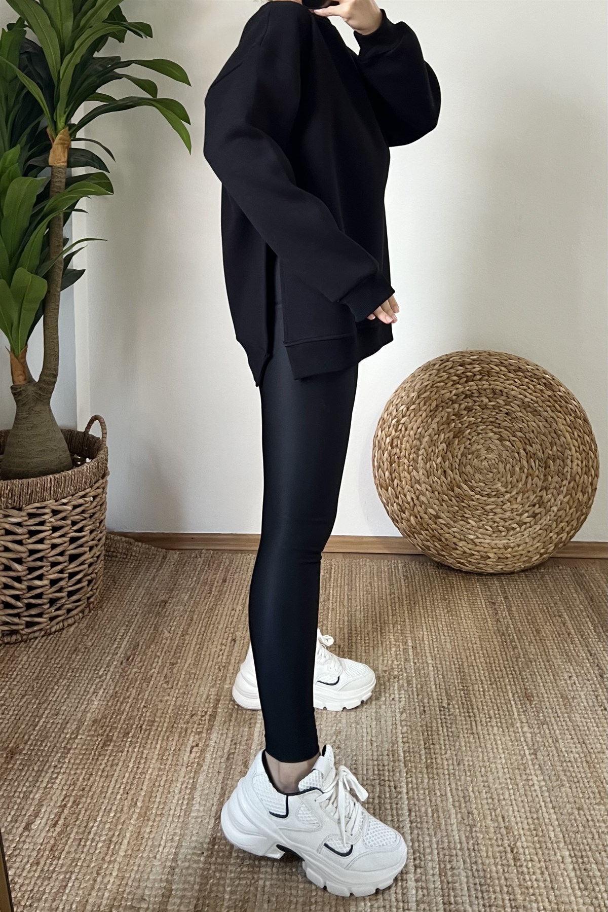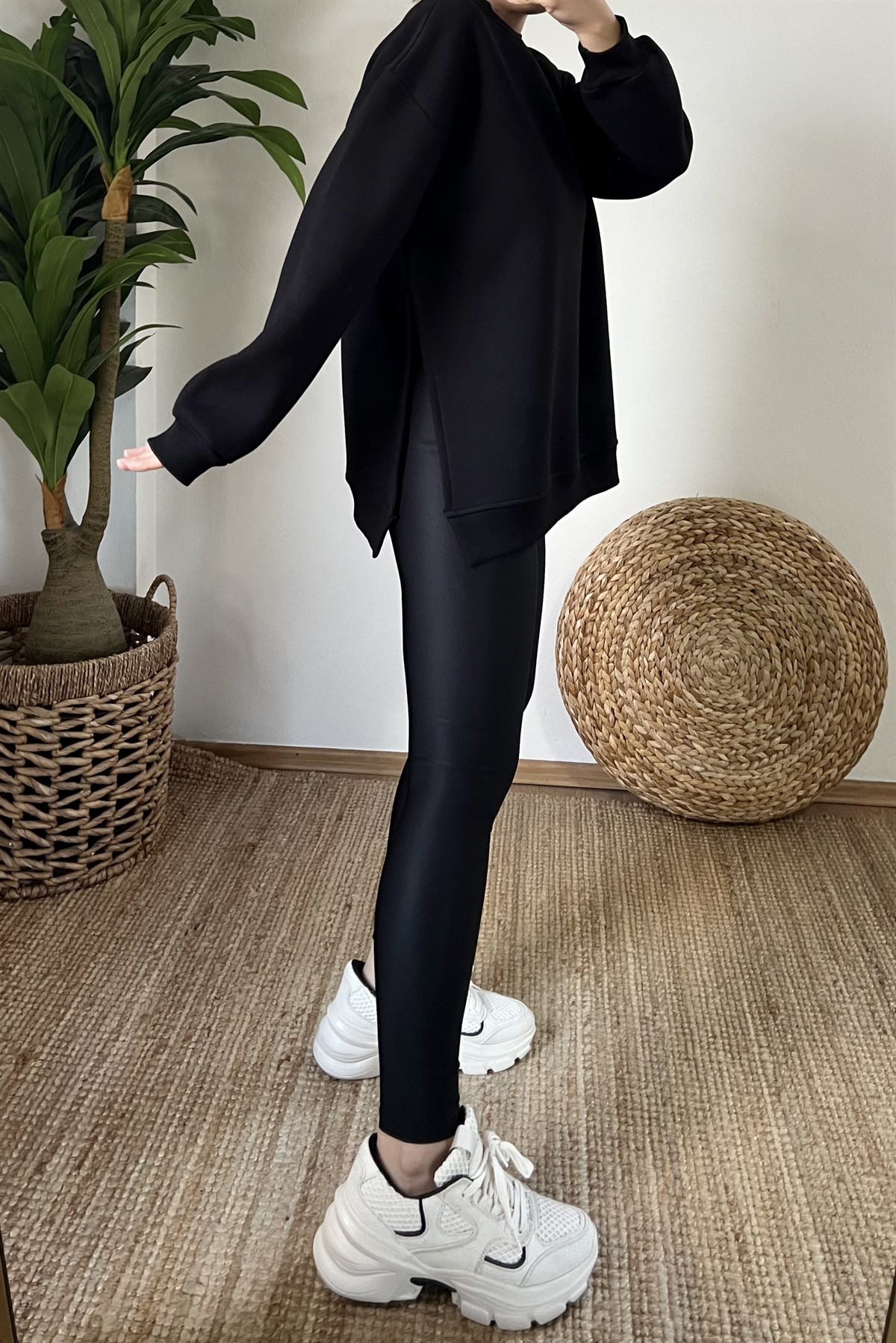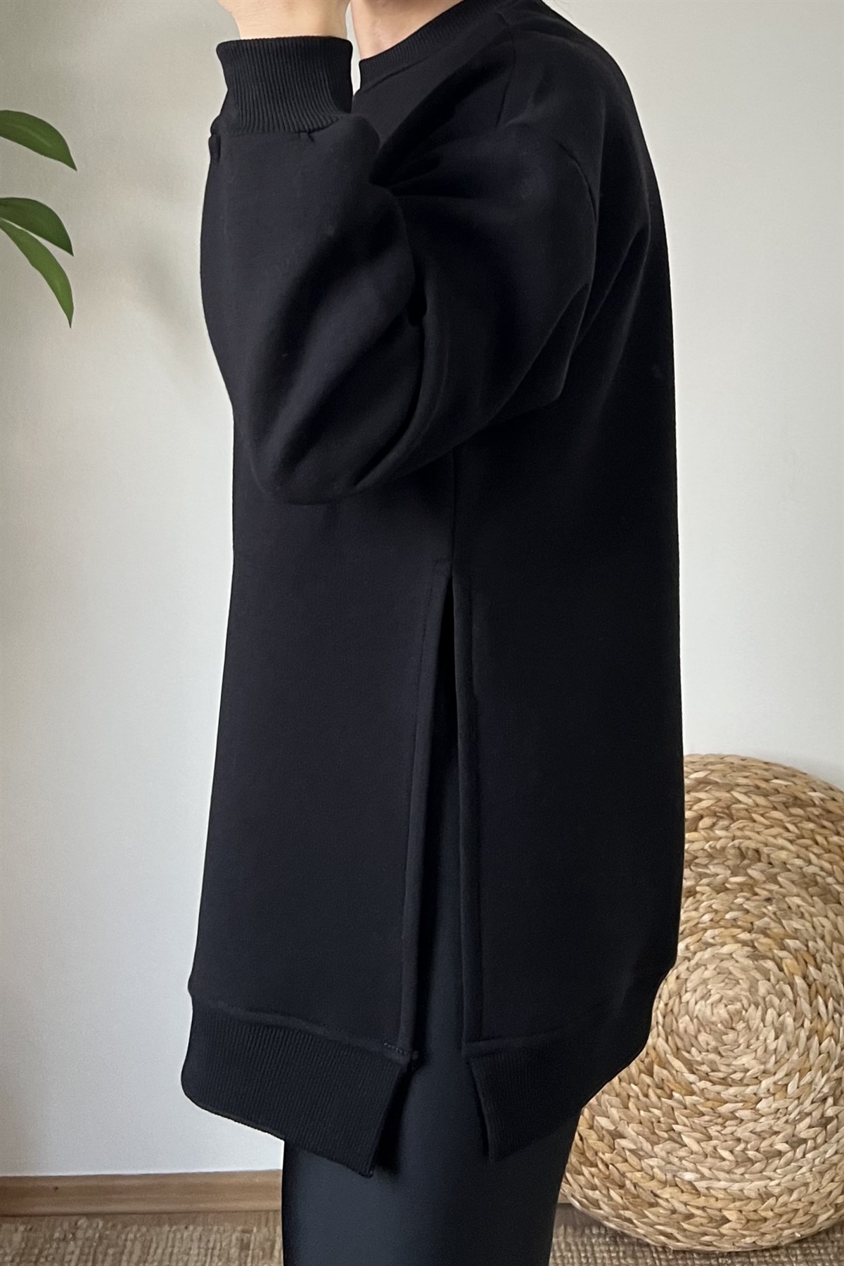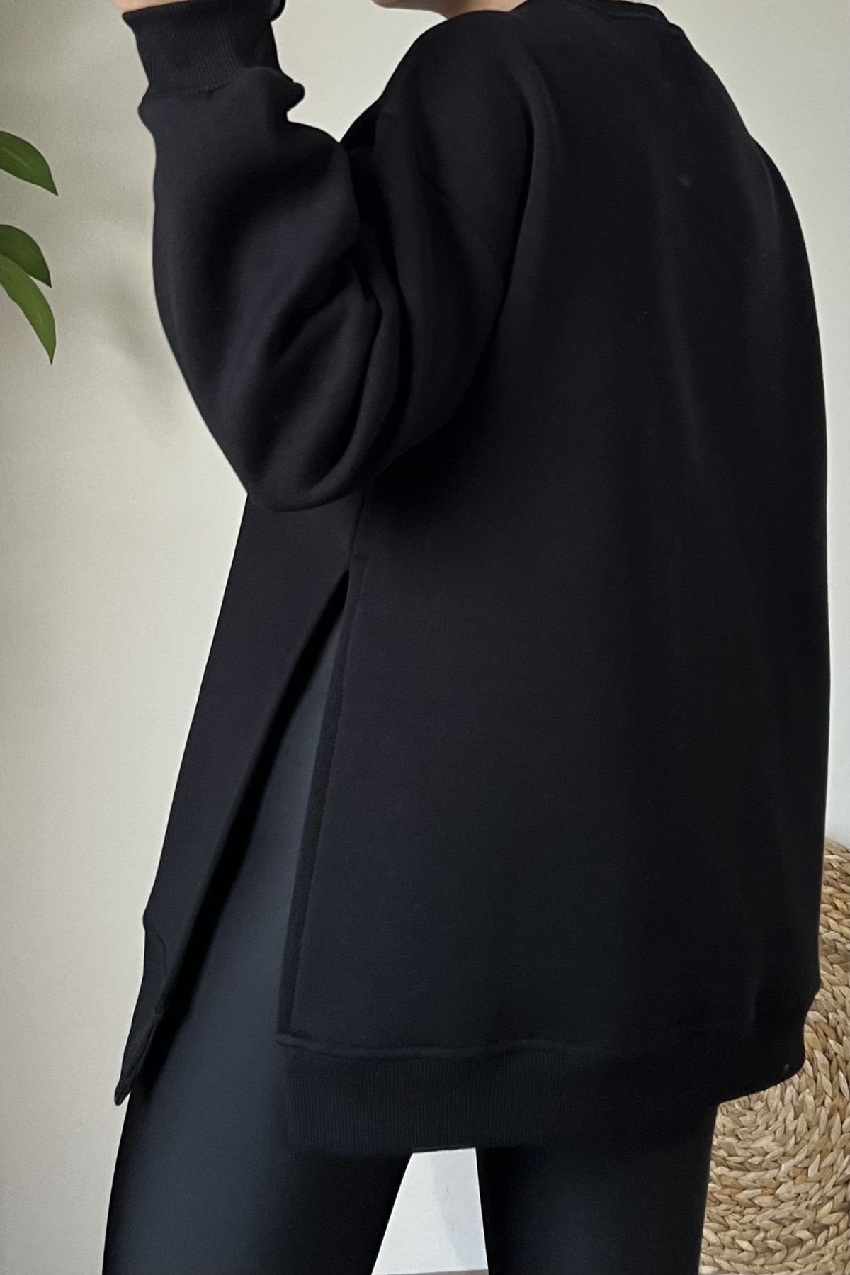 Siyah Yanı Yırtmaçlı Oversize Sweatshirt