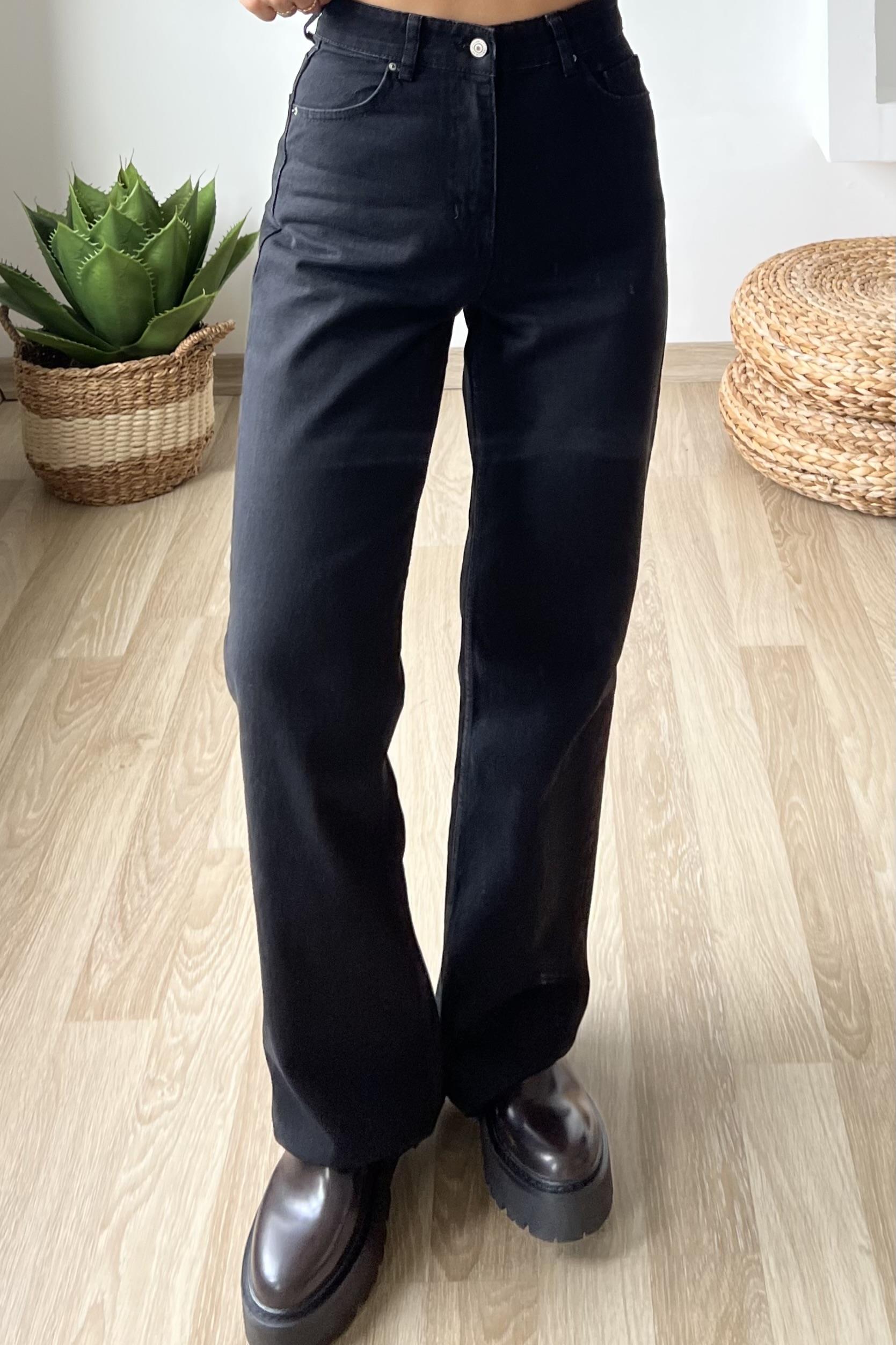 Siyah Yıkamalı Straight Fit Kesik Paça Jean