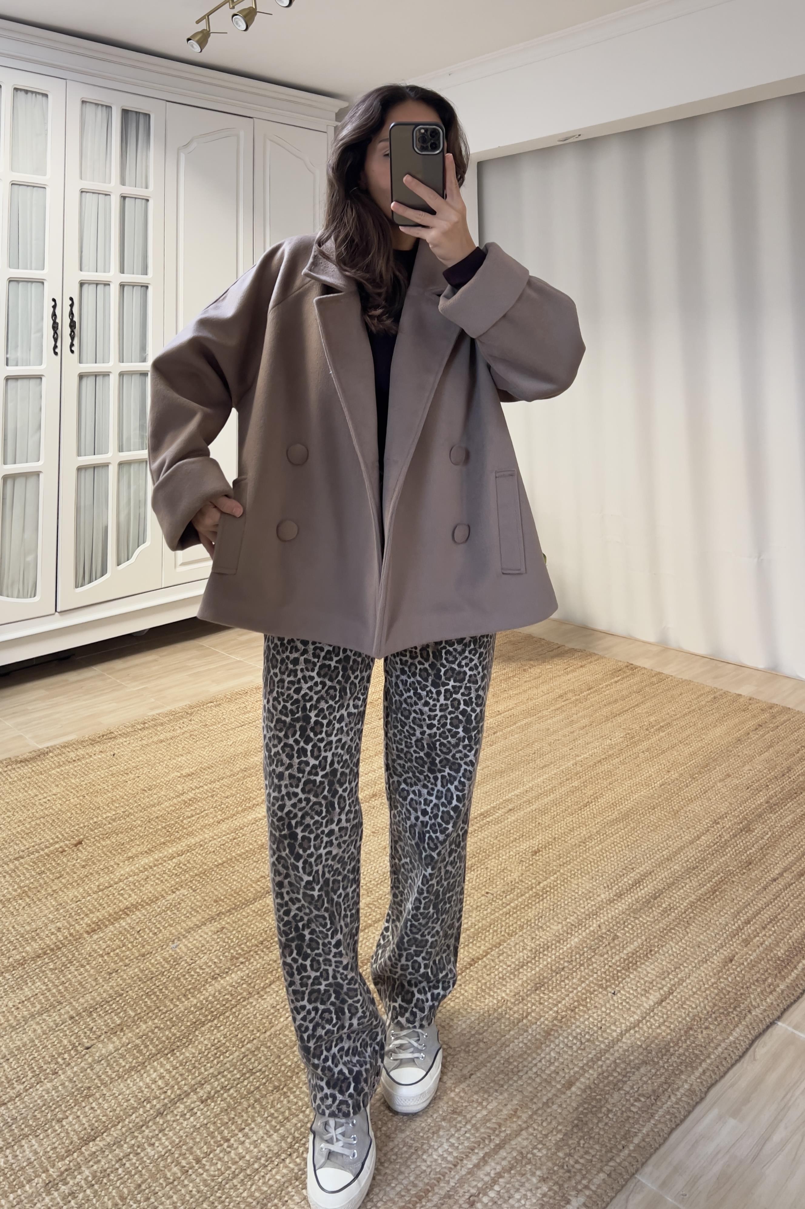 Vizon İthal Kaşe Kruvaze Kısa Kaban