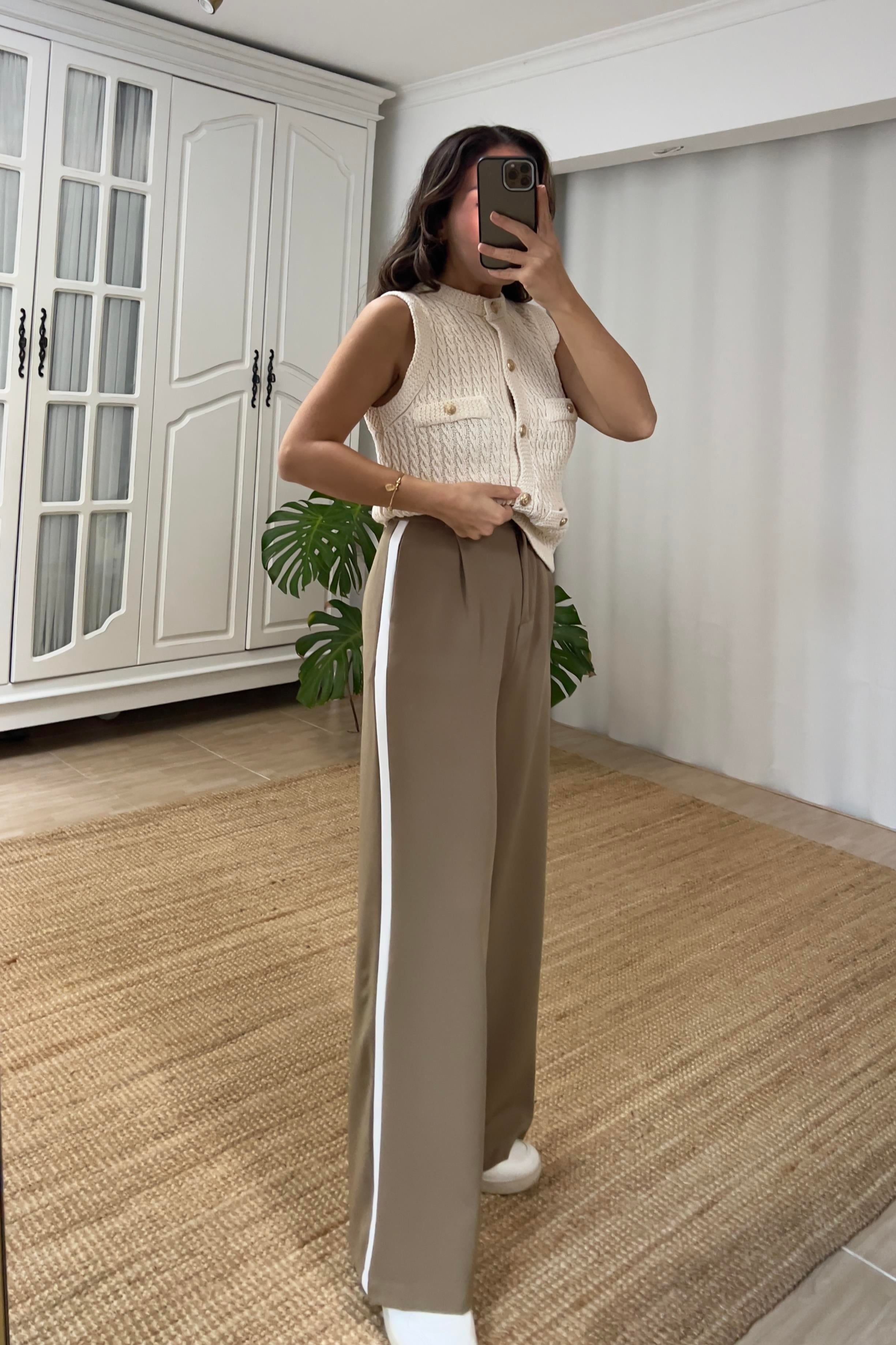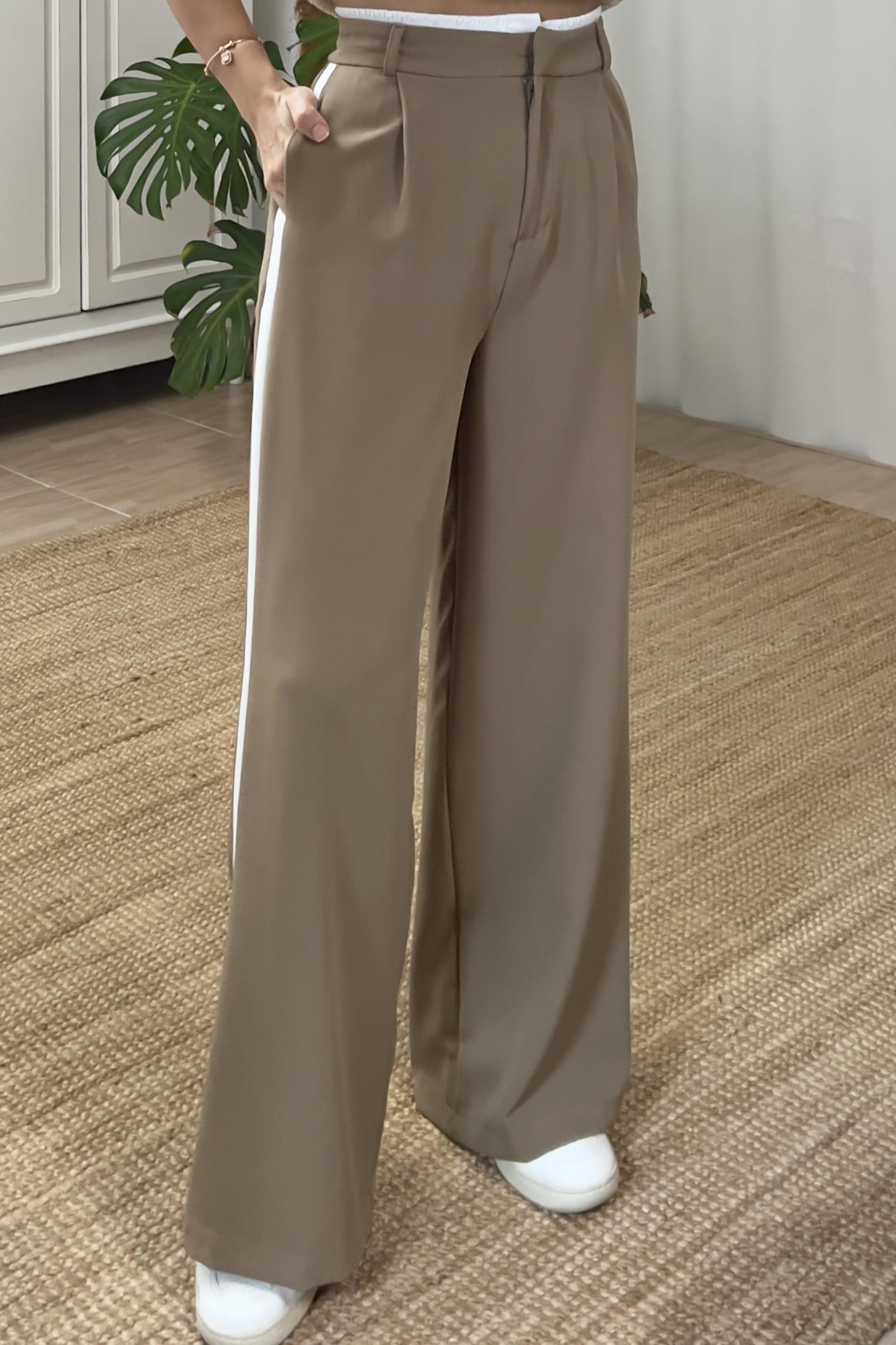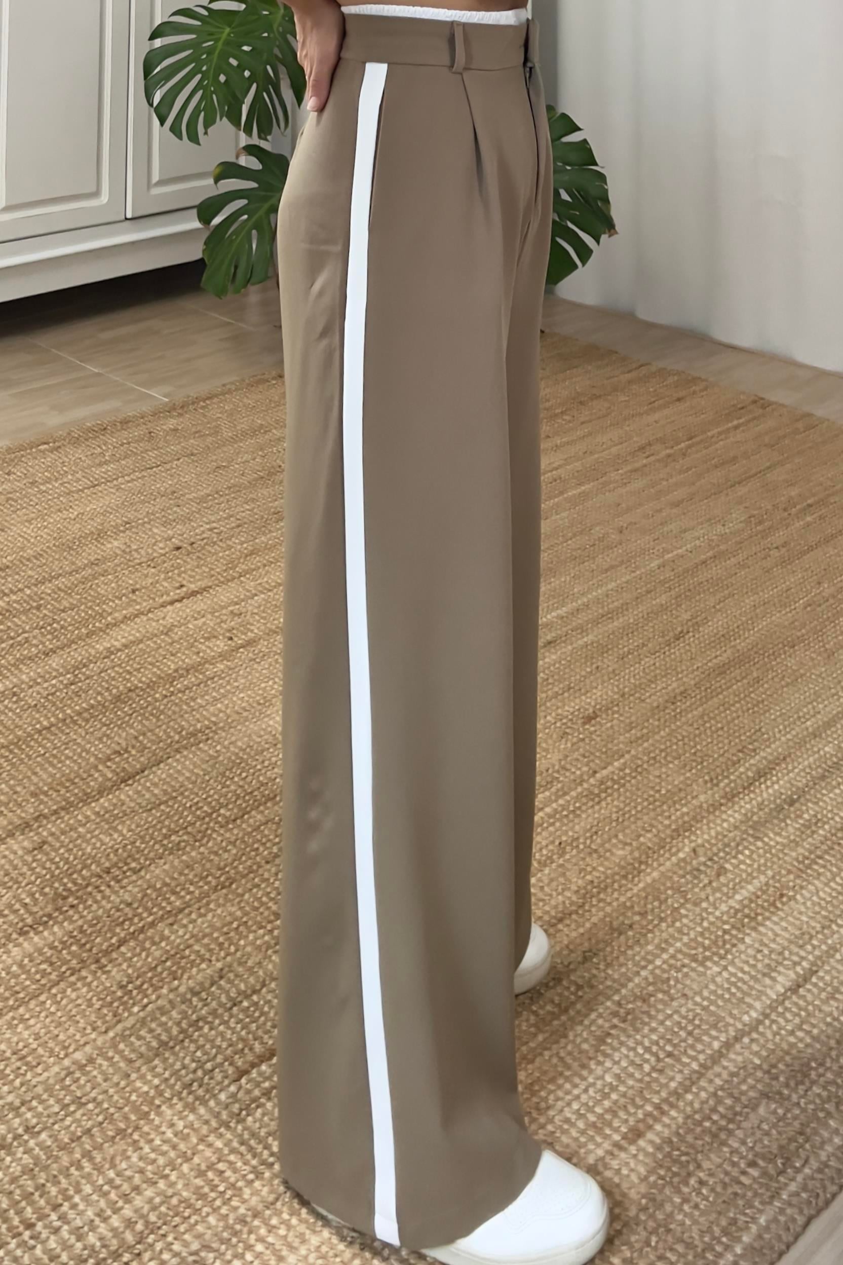 Yağ Yeşili Çift Bel Şerit Detaylı Pantolon