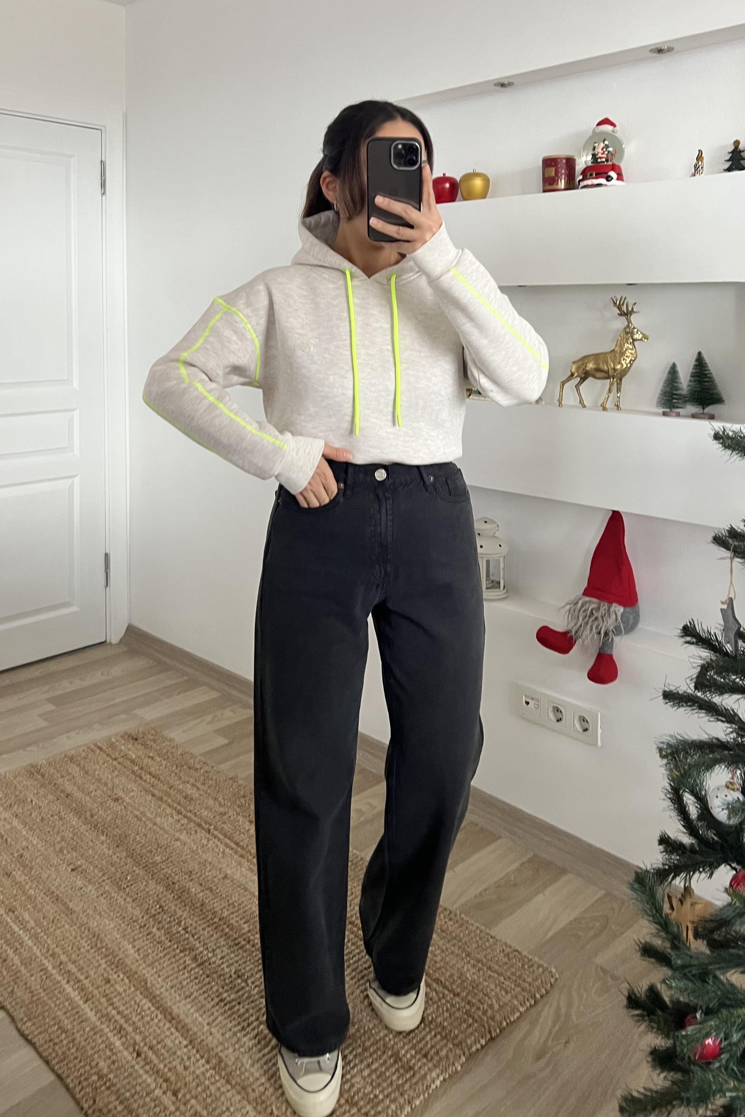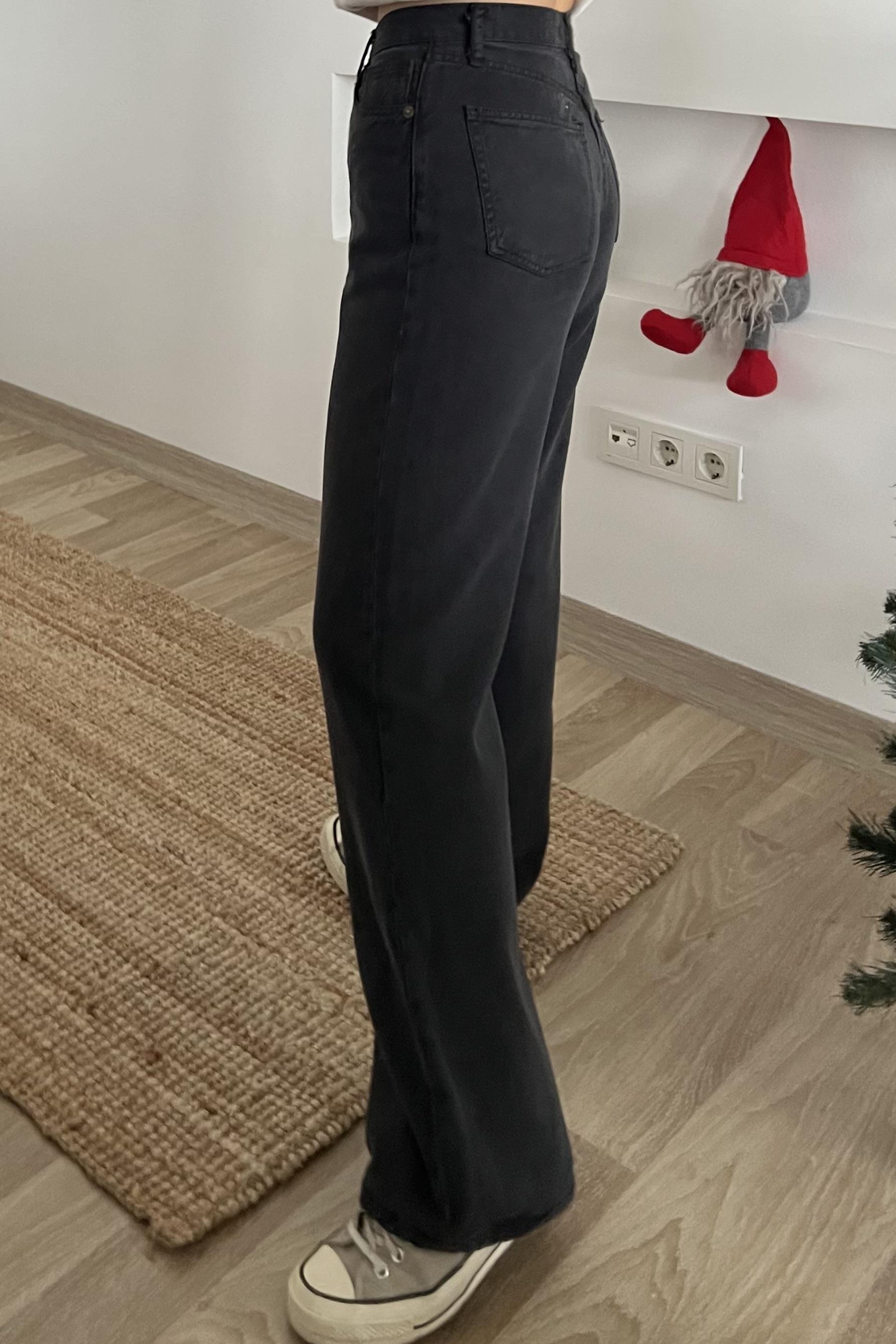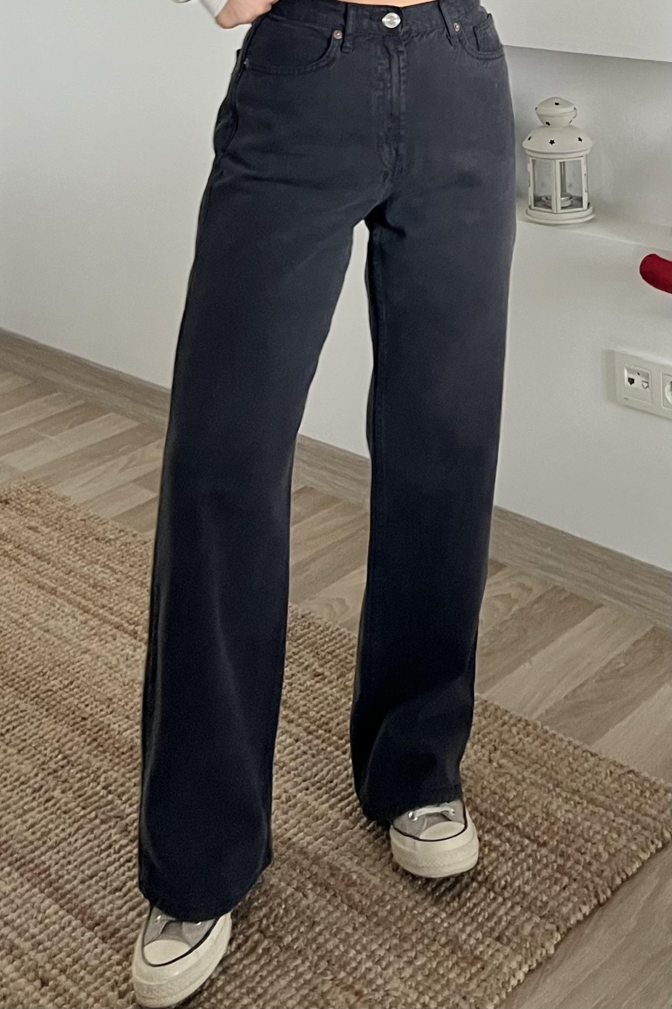 Zr Siyah Yıkamalı Wide Leg Jean